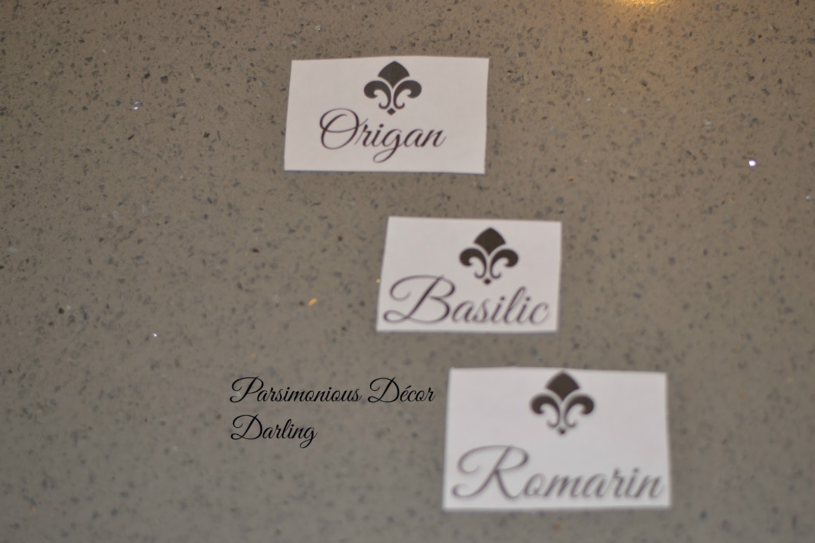 First, using a free photo-editing software, create the graphic you want. I chose to write the names for my herbs in French for a little cottage-y appeal. I used